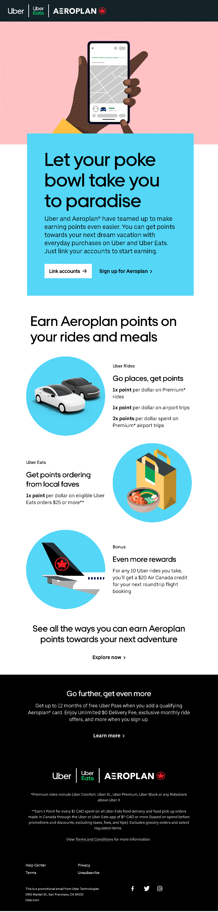 Aeroplan and Uber teamed up to let your points take you further. We showed members how simple purchases can lead to the most spectacular places. Working with Buck Design was a career highlight.